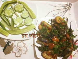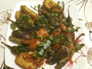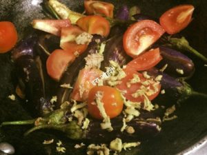 आज हमने अदरक के स्वाद वाले नन्हें नन्हें बैगन बनाये है आप भी ट्राई करके देखिये इन्हे नाना भी बहुत आसान है गर्म तेल मे बैंगनों को चीरा लगा कर डाल दे कटे टमाटर भी डाले , कद्दूकस से कस कर अदरक डाले नमक मिर्च डाल कर चला फिराये यदि आलू डाल रहे हो तो हल्का पाणि डाल कर ढक कर पकाये व भून कर ऊपर से हराधनिया काट कर सजाये
