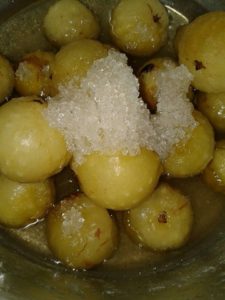 पके ऑवले को पानी से निकाल कर डेढ़ गुना चीनी मे दबा दे