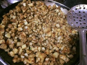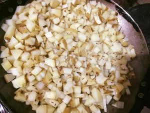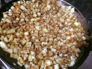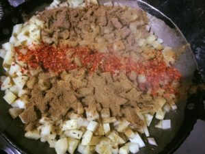 थोड़े से गर्म तेल मे जीरे से तड़का दे कर कटे आलू डाल कर नमक मिला कर ढक कर धीमी आँच मे पकाये गलाये