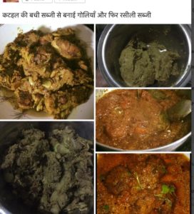 हमने कटहल की बची हुई सूखी सब्जी पीस कर छोटी छोटी गोलियाँ बना कर तल कर पहले गोलियों का मजा लिया फिर मसाला तैयार कर्क उनकी सब्जी बना ली