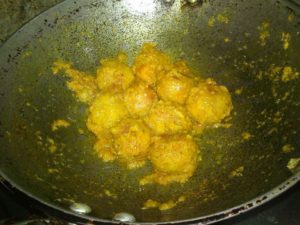 और कोफ्तो को मसाले के साथ भून कर सब्जी बनाये