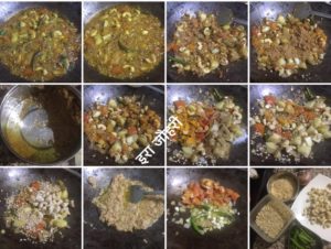 गर्म तेल मे जीरे से तड़का दे कर कटा प्याज लहसन अदरक हरी मिर्च डाल कर हल्का भूने और फिर काजू डाल कर पुन: हल्का कर भून हल्दी धनिया नमक मिर्च व गरममसाला डाल कर भून कर खोया मिलाये व पुन: भून कर पानी डाल कर शोरबा या रसा लगा कर रझा कर सब्जी बनायें थोड़ा गरममसाला ऊपर से बुरक कर कटी हरीधनिया से सजाये