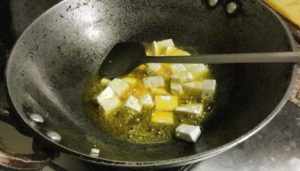 सबसे पहले पनीर को टुकड़ो मे काट कर तल ले