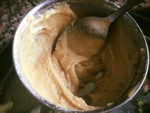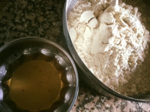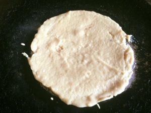 मीठा चीला हमने गुलाबजामुन की बची हुई चाशनी मे गेंहूँ का आटा पानी के साथ घोल कर चिकनाई लगे गर्म तवे पर घोल फैला कर धीमी आँच पर सेक कर बनाया है