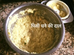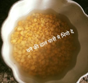 पिट्ठी बनाने के लिये सबसे पहले चने की दाल पानी मे भिगो दे