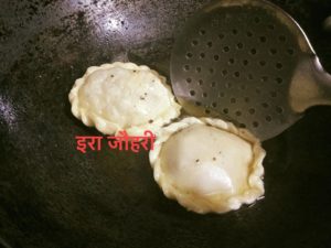 धीमी आँच पर तलने पर अन्दर तक सिक जाती है और स्वादिष्ट बनती है चन्द्रकला मे अगर मिठास कम लगे तो चीनी की चाशनी बना कर पाग दे मीठी हो जायेगी