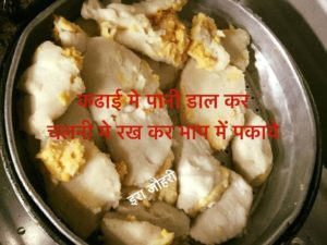 कढाई मे पानी डाल कर चलनी रख कर गैस जला ले और ढक कर पानी खौलने दे