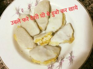 पकने के बाद चाहे तो गरम गरम मोमो की तरह देशी घी में डुबो कर खाये