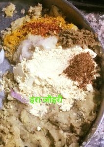 •  जिमीकन्द को उबाल कर छील कर भर्ता बना कर नमक मिर्च हल्दी धनिया गरममसाला चाटमसाला पिसा लहसन प्याज अदरक और बेसन या भुने चने का आटा मिला कर