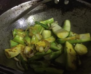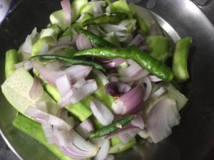 जीरा मिर्च से छुकी प्याज ,हल्दी ,नमक पड़ी तुरई !!!