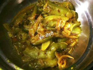 गर्म तेल मे जीरा मिर्च से लम्बाई मे कटी तुरई प्याज संग हल्दी नमक डाल कर पकाये