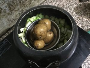 आज फिर हमने एक ही समय मे लौकी की सब्जी भी बना ली और साथ मे आलू भी उबाल लिये