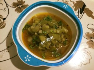 महीन टुकड़ो में कटी जीरेमिर्च से छुकी लौकी की सब्जी और भुट्टे के मुलायम दानो की आलू के साथ मिला कर बणाई गयी स्वादिष्ट सब्जी