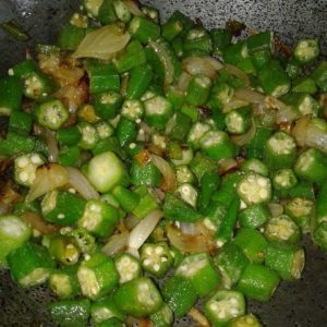 समान या जितना चाहे प्याज भून कर हरी मिर्च डाल कर गोल गोल कटी भिन्डी डाल कर छौंके नमक डाल कर धीमी ऑच पर खुला खुला गलाये व भूने