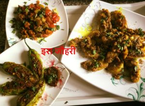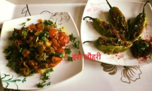 बेसनी मोटी मिर्च और टमाटर की चटपटी मिर्चें और पीठे का केला आलू !!!!!