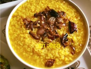 हल्दी नमक डाल कर दाल पकाये देशी घी मे हींग मिर्च भून कर छौक लगाये कच्चा प्याज देशी घी मे भून कर दाल मे ऊपर से डाले
