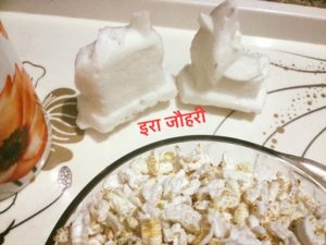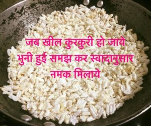 जब खील कुरकुरी हो जाये भुनी हुई समझ कर स्वादानुसार नमक मिलाये