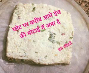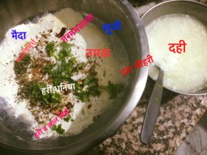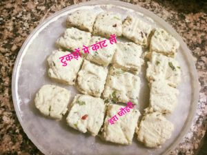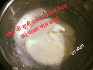 पहले हमने सूजी व मैदा निकाली चलो कुछ मठरी ही बना लेते है फिर जो हम पहले कभी बना चुके हैं उससे कुछ हट कर बनाने का मन कर रहा था बेटा भी पास मे नही था तो कोई नया प्रयोग भी कर सकते थे भूख हल्की ही थी तो हल्का ही बनाना था तो उसी मैदा व सूजी मे नमक, पिसी लाल व कालीमिर्च ,गरममसाला , कटी हरीमिर्च व हरीधनिया और थोड़ा दही मिला कर मुलायम आटा तैयार किया और उसे किसी सपाट जगह पर चपटा करके टुकड़ो मे काट कर दस मिनट या कुछ समय के लिये छोड़ दे इतनी देर मे सूजी फूल जायेगी और कटे टुकड़े आसानी से हाथ पर आ जायेंगे