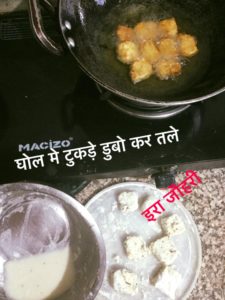 थोडी सी सूजी व मैदा में पानी डाल कर पतला घोल तैयार करें और उसमे ये टुकड़े डुबो कर पहले तेज़ फिर हल्के सिंक जाने पर धीमी आँच पर तले इससे ये अन्दर तक बढिया सिंक जायेंगे