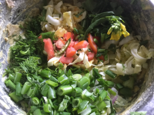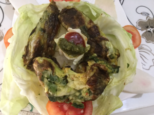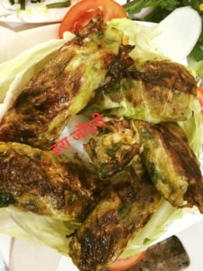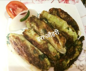 बेसन मे हींग नमक मिर्च टमाटर , सोया ,मेथी ,प्याजा ,सरसो ,बन्दगोभी , हरीमिर्च मिला कर हल्का पानी डाल कर सब मिला कर गाढा घोल बनाये और बन्दगोभी के पत्तो मे थोडी थोड़ी सामग्री रखते हुये रोल्स बना कर तवे पर चिकनाई लगा कर धीमी ऑच मे ढक कर फ्राई करे ठंडे होने पर टुकड़े काट कर दुबारा सेक कर स्वाद के मजे ले