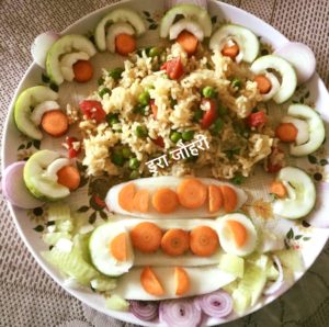 गाजर मटर आलू का कालीमिर्च प्याज वाला पुलाव
