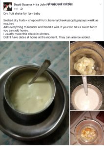 तो उसके लिये उसकी माँ स्वाति ने बनाया यह पौष्टिक स्वादिष्ट सूखे मेवों व फलो के गुणों से भरपूर मिल्कशेक