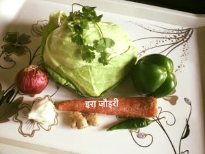 बन्दगोभी , गाजर और शिमलामिर्च की मिक्स सब्जी