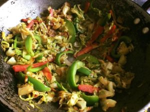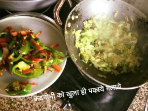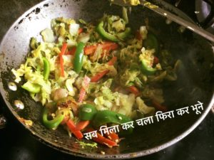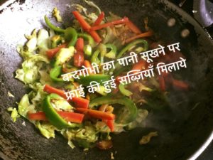 बन्दगोभी का पानी सूखने पर फ्राई की हुई सब्ज़ियाँ मिलाये