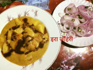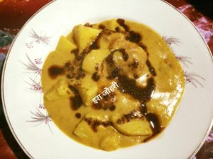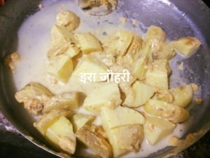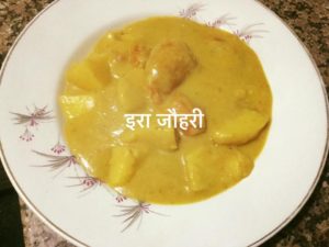 कुछ नये तरीके से बनाने के विचार से आज हमने साधारण टमाटर आलू मे बेसन मिला कर ये बसन्ती आलू तैयार किये है जो कुछ अलग स्वाद ले कर ज़ुबाँ पर चढ़ गये आप भी स्वाद ले कर देखियेगा बनाने तो हम टमाटर आलू ही जा रहेथे इसके लिये हमने गर्म तेल मे जीरे का तड़का दे कर पिसा मसाला ( प्याज लहसन अदरक हल्दी धनिया मिर्च नमक भूना कटे आलुओ पर बेसन डाल कर हल्के पानी के साथ मिला कर माले मे डाल कर चला फिरा कर कटे टमाटर डाल कर पानी डाल कर रसा लगा कर धीमी आँच पर रझा कर पकाये व आलू गलाये और पकने पर ऊपर से देशी घी मे गरम मसाला भून कर छौक लगा कर ढक दे