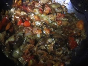 टमाटर भी गलने व भुनने पर भुना बैगन मिलाये सब मिला कर भूने व हराधनिया ऊपर से मिलाये