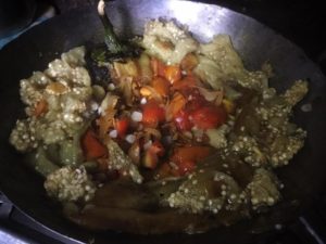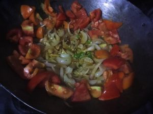 हल्का गुलाबी होने पर कटा टमाटर हरीमिर्च मिलाये