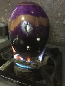 बैगन डणठल की तरफ़ से पहले ऑच पर रख कर भूने फिर दूसरी तरंफ से भूने