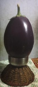 भर्ता बनाने के लिये सबसे पहले बढिया गोल बैगन ले चाकू से कट लगा कर लहसन के जवाँ घोपे
