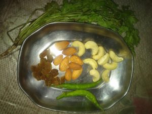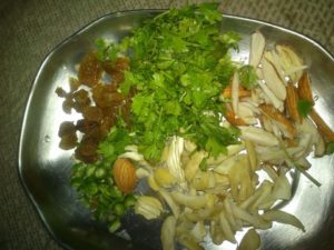 जो मेवे ब्रेड की गुझिया मे भरने हो काट ले हराधनिया हरीमिर्च अदरक भी काट कर सब मिला कर भरावन सामग्री तैयार करे