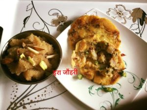 मक्के की मिर्ची कचौड़ी संग सूजी का हलुआ