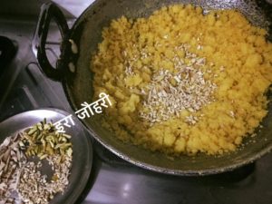 थोड़ी देर तक भूने और कुछ मेवे बाद मे सजाने के लिये बचा ले