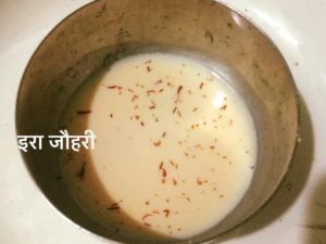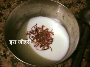 थोड़े से गर्म दूध मे जरा सी केसर डाले