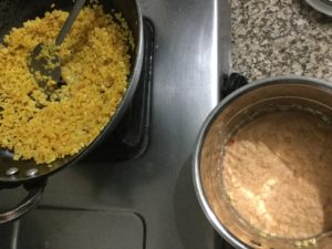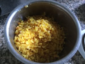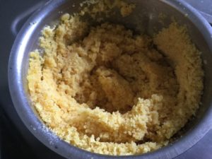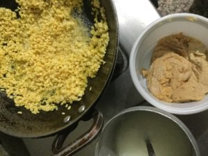 मूँग की दाल , चीनी , खोया व देशी धी चारों बराबर मात्रा मे
