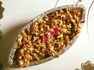 आप चाहे तो बिना खोये के भी इस तरह से लड्डू बना सकते है खोया मिलाने से काजू आसानी से चिपक जाते है आप चाहे तो इन्हे गर्म ही मोल्ड मे भी जमा सकते है हमने छोटी छोटी कटोरियों मे जमा कर ऊपर से भुने काजू चिपका दिये है इसी प्रकार से नाव के आकार मे भी जमा दिये है