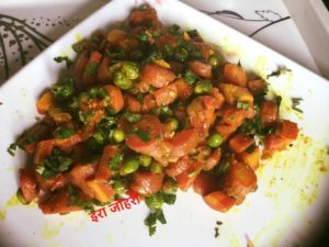 मेथी की खुशबू वाली हरीधनिया से सजी गाजर मटर की सब्जी !!!!