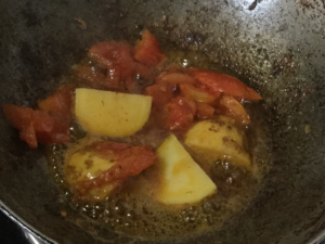 मटन साफ करके उसमे तेजपत्ता , कटा प्याज कुचली लहसुन अदरक डाल कर नमक व पानी डाल कर कुकर मे सीटी लगा कर पकाये मैने आधा किलो मटन मे दो गिलास पानी डाला है पके हुये मीट का यह सूप या पानी ही यखिनी कहलाता है यह बहुत हल्की व ताक़तवर होती है तीखेपन वाले स्वाद के लिये इसमे पिसी कालीमिर्च मिला सकते है यखिनी उन मरीजो को ताक़त के लिये दी जा सकती है जिन्हें चिकनाई मना होती है हमारे घर मे तो बनते ही सब पीना शुरु कर देते है इसके बाद कढाही मे तेल गर्म करके एक एक कर सभी टुकड़े डाल कर तल कर निकाल ले इससे सभी टुकड़े क्रिस्पी हो जाते है ये टुकड़े भी नमक लगा कर चखने मे मजा देते है और फिर सब तलने के बाद बचे तेल मे यदि आलू डालना चाहे तो कटे आलू भी डाल कर तल ले और फिर कटा टमाटर डाल कर हल्का भून कर पिसा मसाला ( प्याज ,लहसन ,अदरक ,हल्दी ,धनिया, मिर्च, नमक ,गरममसाला ) डाले और भून कर तले हुये मटन के टुकड़े भी डाल कर सब भून कर गरम पानी डाल कर रसा लगा कर कुकर मे थोड़ा और पकाये देख ले यदि पूरी तरह मीट गल गया हो तो रझा कर गैस बन्द करदे और यदि कसर रह गयी हो तो अच्छी तरह पका ले नमक इसलिये दोबारा डालने को कहा क्योंकि यखिनी पीने से मीट मे नमक हल्का हो जाता है और ऊपर से थोड़ा डाल देने से सब बराबर हो जाता है जब मीट बन कर तैयार हो जाये तब ऊपर से भी थोड़ा गरममसाला डाल कर ढक्कन बन्द करदे इससे खुशबू अन्दर तक बस जाती है और फिर चाहे तो ऊपर से कटा हराधनिया भी डाल कर सजा कर पेश करे