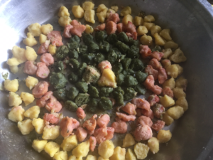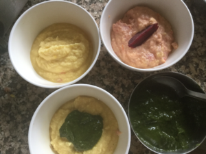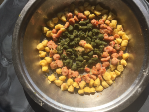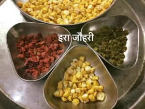 आज मैने तीन रंगो की मुँगौड़िया बनाई है जो तीन स्वाद वाली है