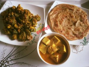 लच्छा पराँठा संग झटपट वाले तरीके से बने करेले की सब्जी और पनीर लबाबदार !!!!!!