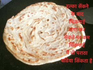 हल्का सेंकने के बाद चिकनाई लगा कर सेकने पर कम चिकनाई में भी पराठा बढिया सिंकता है