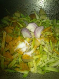 हल्दी नमक मिर्च डाल कर ढक कर गलाये