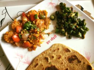 आज हमने भुट्टे के मुलायम दानो को प्याज मिर्च व टमाटर से छौंककर घर मे बनाये टमाटर सॉस को मिला कर स्वादिष्ट सब्जी तैयार की और साथ ही प्याज व हरीमिर्च से छौंक कर कतरवाँ भिन्डी भी बना कर पराठे के संग नाश्ते का लुफ़्त उठाया