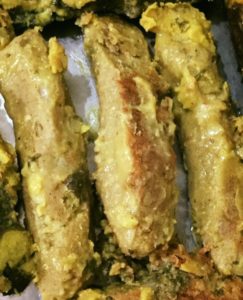 जौ चने का सत्तू , गेहूँ का आटा , हीग ,हराधनिया ,नमक ,मिर्च ,कच्चा प्याज और गरम मसाला मिला कर पानी डाल कर आटा माँड़ कर रोल बना कर उबलते पानी मे डाल कर पका कर ठंडा कर के काट कर गर्म तेल मे हीग जीरे का तड़का दे कर पिसा मसाला ( प्याज लहसन हल्दी धनिया मिर्च नमक गरम मसाला )डाल कर भून कर मसाले के साथ भून कर मन हो सूखा ही खाये या फिर पानी डाल कर रसा लगा कर रंझाये पकाये