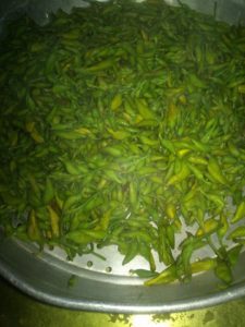 उबलते पानी मे डाल कर कुछ समय रख कर चलनी मे निकाले