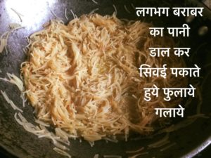 लगभग बराबर का पानी डाल कर सिवई पकाते हुये फुलाये गलाये