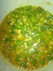 हरी मिर्च टुकङो मे काटे घन्टा भर हवा मे रख कर अतिरिक्त पानी सुखा ले